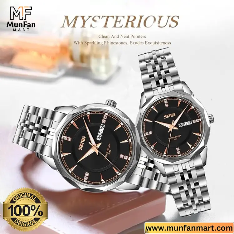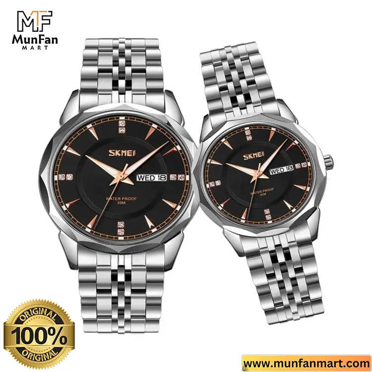 SKMEI 9268 Silver Black Premium Luxury Couple Watch