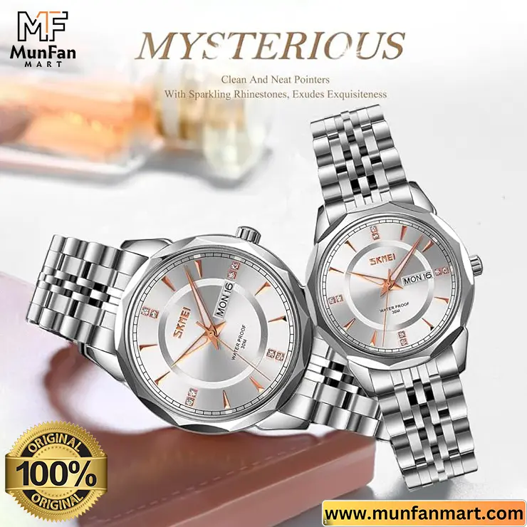SKMEI 9268 Full Silver Premium Luxury Couple Watch