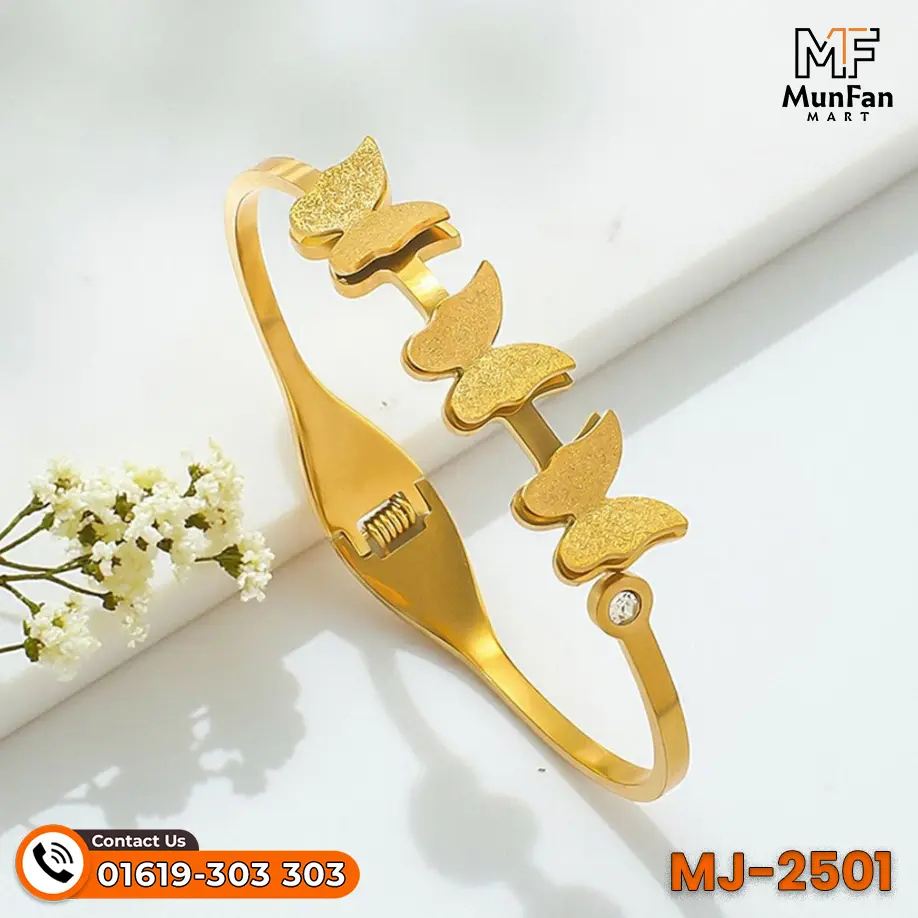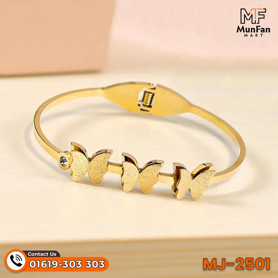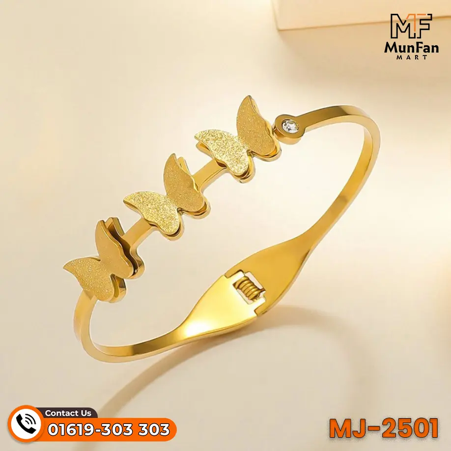 You need this bracelet in your life now. It combines style, quality, and a good price. The butterfly design is unique and very special. It elevates your look in seconds every time. You feel good wearing something this beautiful today. It connects you to modern fashion trends instantly. You support a local business at MunFanMart. The price of 1,200 taka is perfect. Do not wait to buy this luxury item. It is the best treat for yourself today. You will not regret this stylish purchase ever.