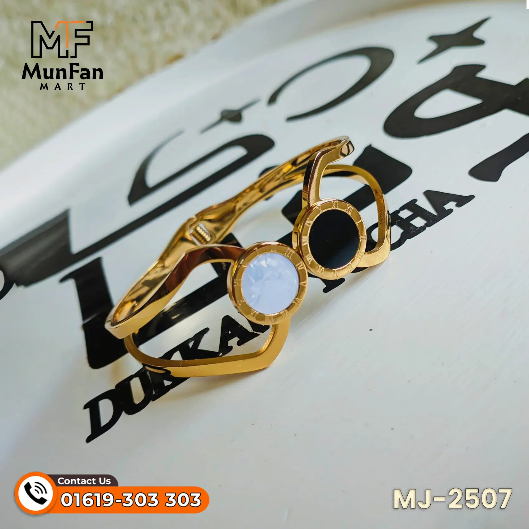 The price of gold-plated luxury bracelets in Bangladesh matters. You want the best style for yourself. This bracelet adds charm to every outfit. It features beautiful black and white stones. The design looks modern and very elegant. Women love wearing unique jewelry every day. This item makes your wrist look stunning. You receive high quality at low costs. Black and white stone bracelet prices vary. We offer the best deal for you. Fashion lovers admire this specific jewelry piece. It combines tradition with a modern touch. The gold plating shines like real gold. You can wear this for many hours. It feels comfortable on your delicate skin. Luxury bracelets online Bangladesh stores sell this. You need to choose the right seller. MunFanMart.com brings this exclusive item to you. The finish looks premium and very expensive. You get value for your hard-earned money.