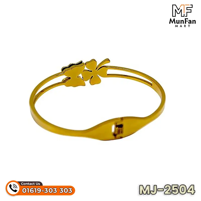 Women in Bangladesh love gold plated jewelry. It offers the look of real gold. This bracelet fits the current fashion demand. Women want accessories that are versatile today. Wear it with a saree or jeans. It adapts to any outfit you choose. The gold tone warms up your skin. It adds a glow to your hands. Layer it with other gold plated bangles. Or wear it alone for simple elegance. The trend is moving towards nature motifs. Butterflies and flowers are top fashion choices. Stay ahead of trends with this piece. Model 2504 is the future of fashion.