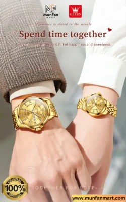 The OLEVS 3620 Couple Full Golden quartz watch is not just a tool for keeping time; it is a statement of sophistication and reliability. With its elegant design, robust construction, and practical features, this watch is perfect for those who appreciate fine craftsmanship and functionality. Whether for personal use or as a gift, the OLEVS model 3620 Full Golden watch in bangladesh is a timepiece that promises to impress and endure.