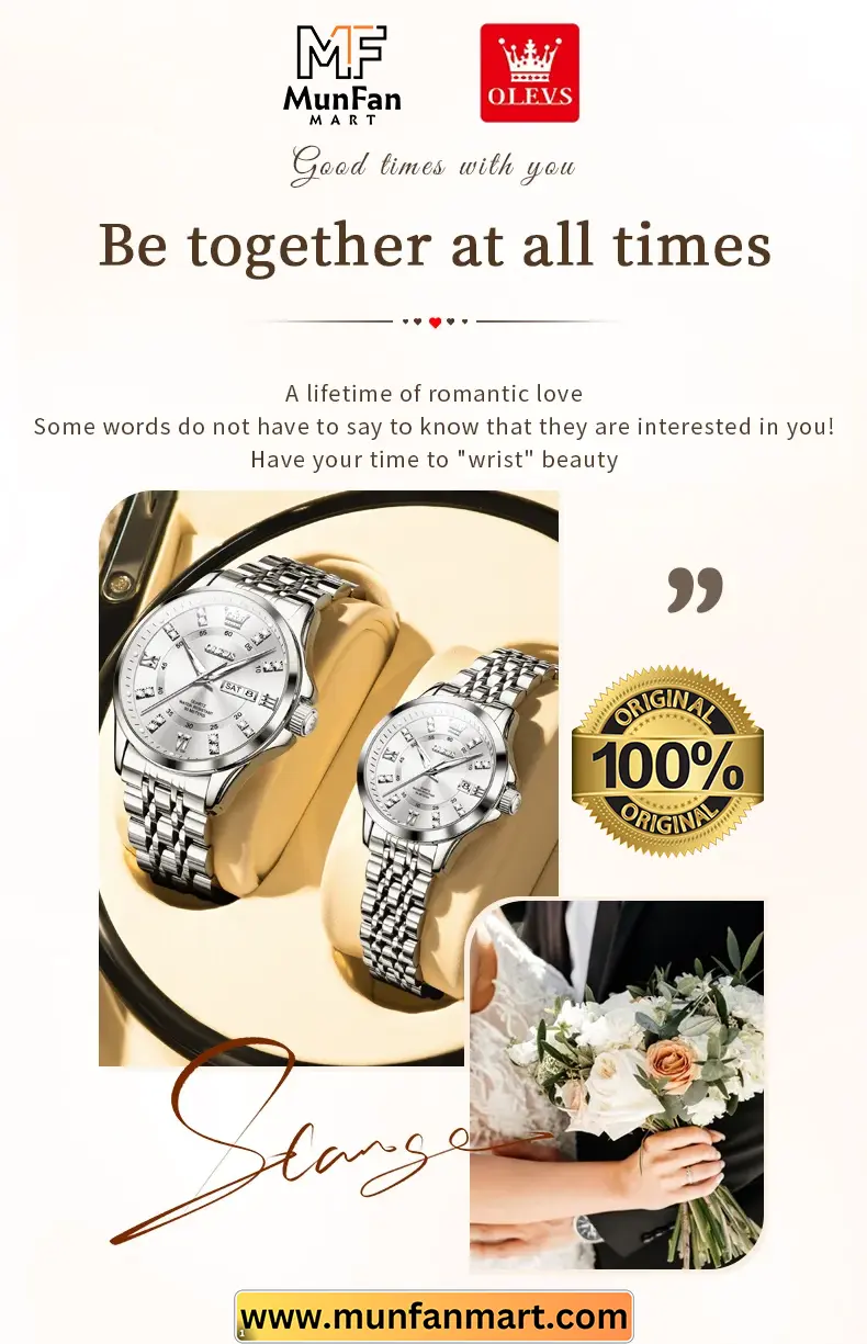 In the world of horology, the olevs 3620 original quartz design Couple Premium Watch stands out as a testament to style, precision, and durability. This timepiece, crafted by the renowned brand OLEVS, merges classic design with modern features, making it an ideal choice for loving Couple. In the above, we discuss about the specifications, price and unique attributes that make the OLEVS 3620 a noteworthy addition to any watch collection at bangladesh.