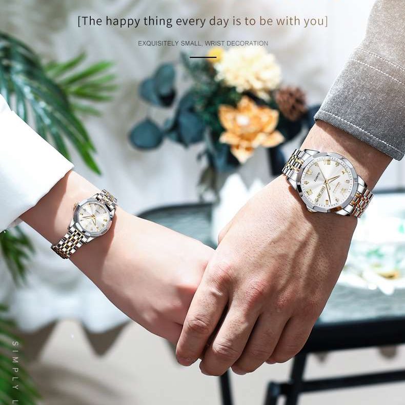 The two-tone color is a major update. The silver and gold couple watch design shines. It blends two classic metals for luxury. The gold plating is durable and bright. It does not fade or lose color. The silver stainless steel is polished well. It reflects light beautifully in the sun. This premium dual-color couple watch stands out. It looks more expensive than it costs. The bezel adds a refined, sharp look.