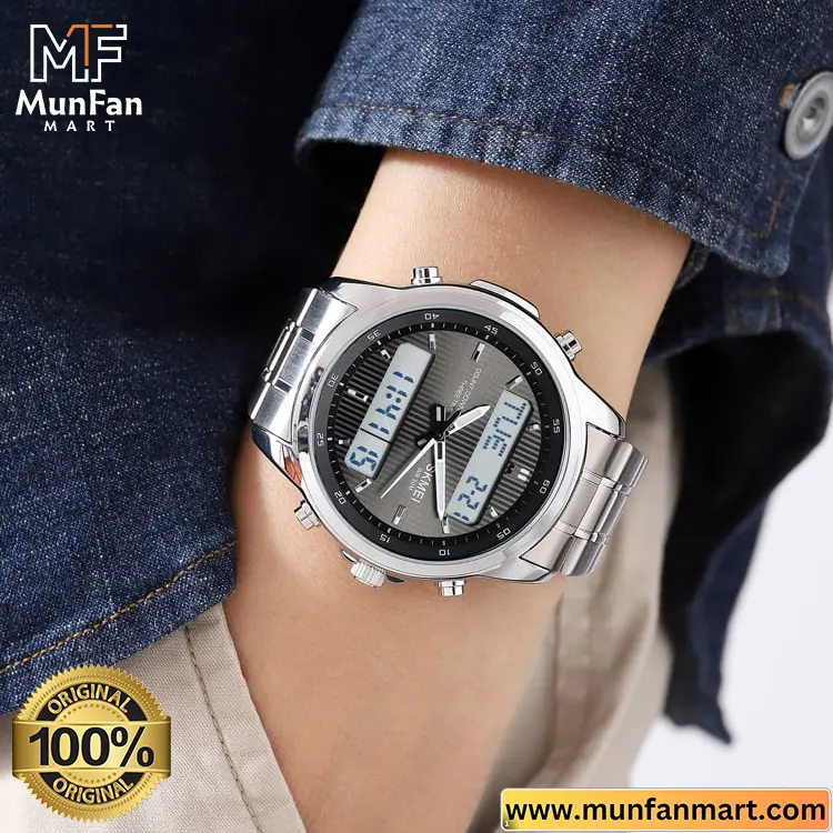 Buy SKMEI 2049 Silver Black Dual Time Quartz Watch at the best price in Bangladesh at Munfan Mart online store.